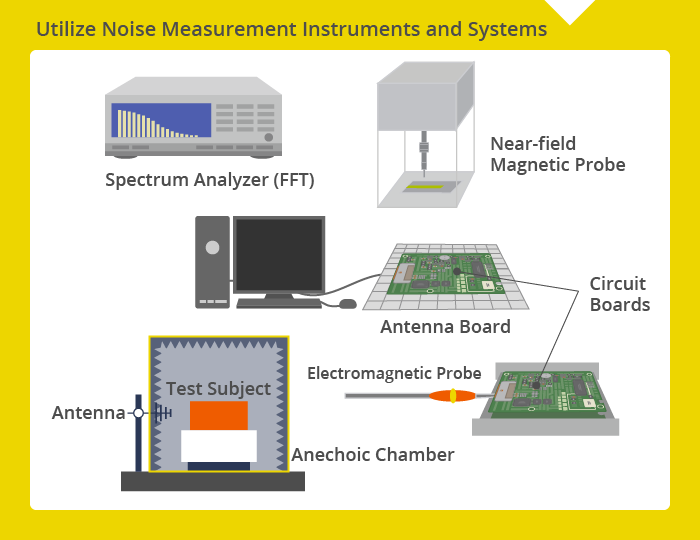 It is said that 90% of a problem is practically solved once the cause is identified. Like modern medicine—where CAT scans, blood tests and other advanced tools are utilized to diagnose diseases—the causes of noise need to be investigated using a multifaceted and systematic approach. Begin with measurement and analytic instruments to examine the frequency spectrum and waveforms of the noise.