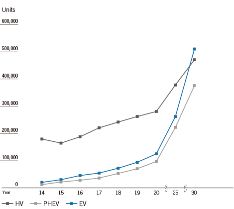 Source: Sogo Planning 2017 Latest Trends in and Forecasts for Electric Vehicle-related Markets.
