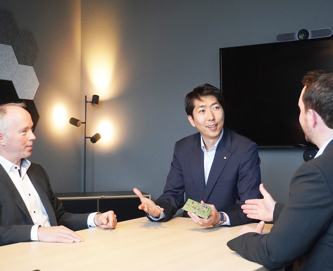 入社以来、自動車関連部品の営業に携わっています。入社3年目から海外出張が増え、入社6年目にはドイツのミュンヘンに駐在。ドイツ顧客の担当営業やEU顧客の納期サポートなど、幅広い業務を経験しました。入社10年目に、同じドイツのシュトゥットガルトの拠点に異動。以来、世界的に有名な自動車部品メーカーを担当し、EV用のインバーターやチャージャー、自動運転に欠かせないカメラやレーダー向けに、電子部品やセンサーの営業を行っています。また、チームのマネジメントも大切な仕事。今はグループリーダーとして、20名ほどのメンバーを束ねています。