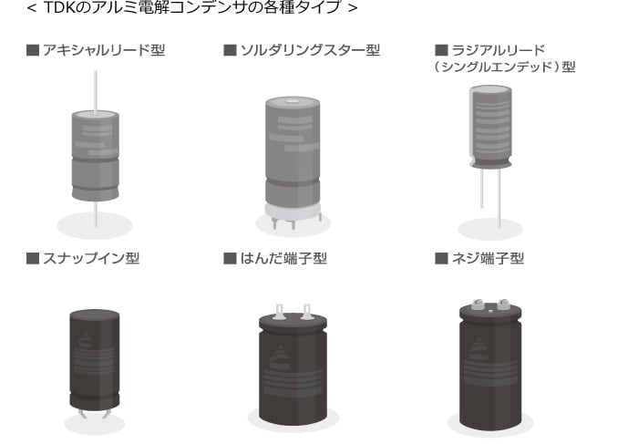 TDKのアルミ電解コンデンサのタイプと主要アプリケーション
