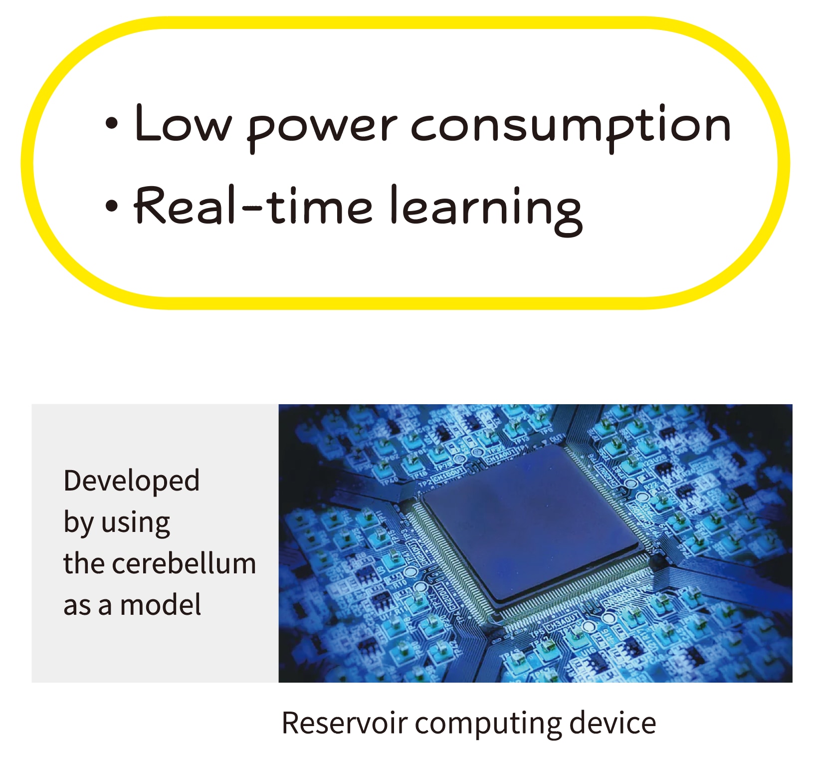 Reservoir computing is AI technology that specializes in predicting the movement or changes of an object. Until now, AI has required prior learning and massive computing power, but the reservoir greatly reduces the amount of computation performed and the effort of learning, achieving AI that is efficient and saves energy.