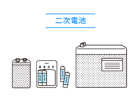 電池には充電できない「一次電池」と充電できる「二次電池」があります。主な一次電池にマンガン電池やアルカリ電池があります。主な二次電池には、リチウムイオン電池やニッケル水素電池などがあります。